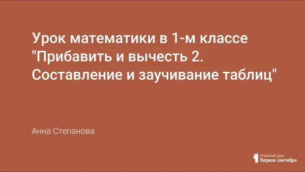 Цель урока: повторение приёмов сложения и вычитания числа 2; повторение терминов, изученных на предыдущих уроках: "слагаемое", "сумма"; закрепить знания о частях задачи, этапах её оформления.