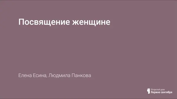 Интегрированное мероприятие для широкого круга слушателей. Обращаясь к лучшим произведениям мировой художественной культуры, авторы стремились показать роль женщины – матери, невесты, жены, дочери – в жизни общества, ее высокое предназначение: «…и божество, и вдохновенье, и жизнь, и слезы, и любовь».