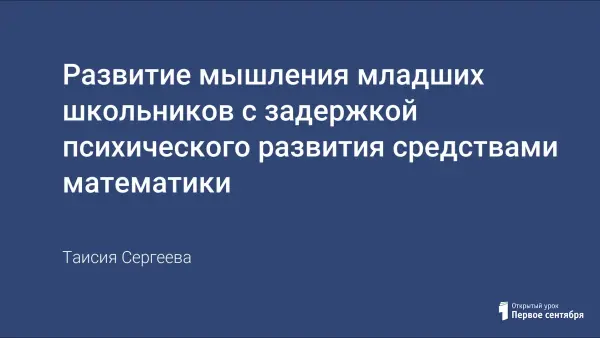 В статье рассказывается об организации занятий по развитию мышления младших школьников с задержкой психического развития средствами математики; даются разработки коррекционных занятий, которые способствуют повышению общего уровня развития учащихся, коррекции отклонений в развитии познавательной деятельности и речи, восполнению пробелов в знаниях, выработки положительной учебной мотивации и снижению умственного переутомления, формированию навыков самоконтроля.
