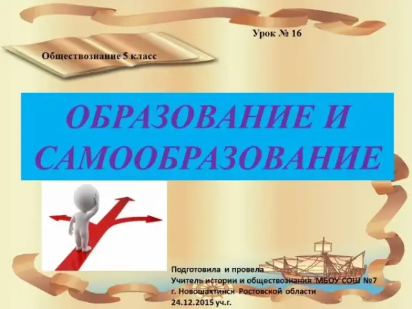 Цель урока: создать условия для формирования представлений о том, что человеку необходимо заниматься самообразованием, развивать свои способности; создать условия для овладения системой познавательных учебных действий, необходимых для применения в практической деятельности, изучения смежных дисциплин, продолжения образования, а также формирования навыков самооценки.