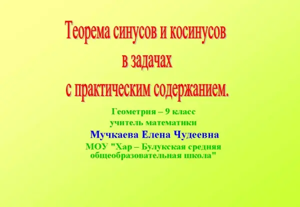 Теорема синусов и косинусов в задачах с практическим содержанием. 9-й класс