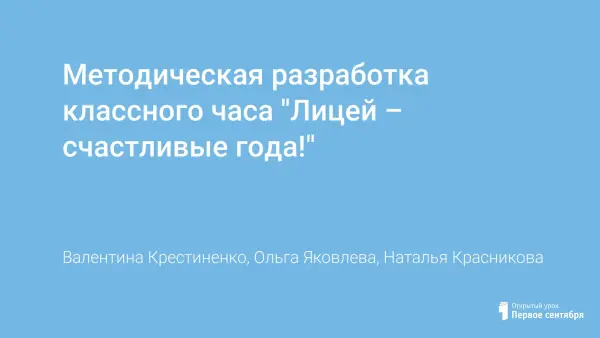 Открытый классный час посвящен юбилею профессионального лицея № 1 города Губкин Белгородской области. Это виртуальное путешествие в прошлое, для подготовки которого используются архивные материалы музея учебного заведения и краеведческого музея города. На мероприятии учащиеся имеют возможность узнать историю лицея, познакомиться с его первыми работниками, а также с бывшими выпускниками, заслуженными работниками базового предприятия.