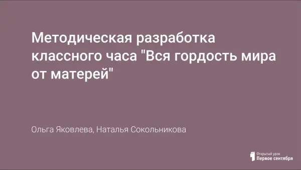 Методическая разработка классного часа "Вся гордость мира от матерей"
