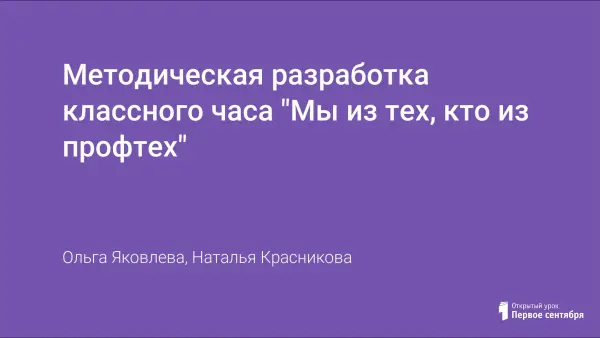Методическая разработка классного часа "Мы из тех, кто из профтех"