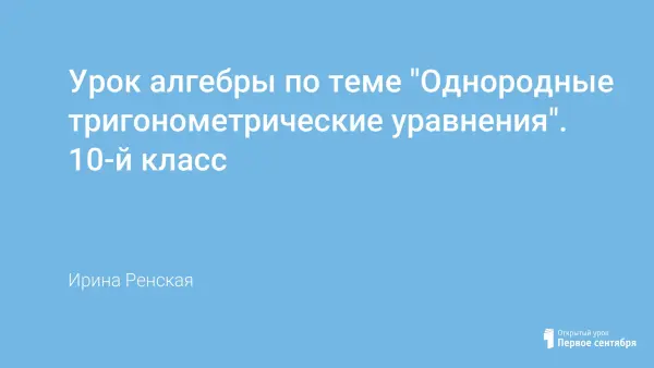 На уроке в 10-м классе изучается алгоритм решения однородных тригонометрических уравнений. В ходе урока создаются условия для формирования навыков организации собственной деятельности – самостоятельного поиска решения, самоконтроля, анализа результатов своей работы.
