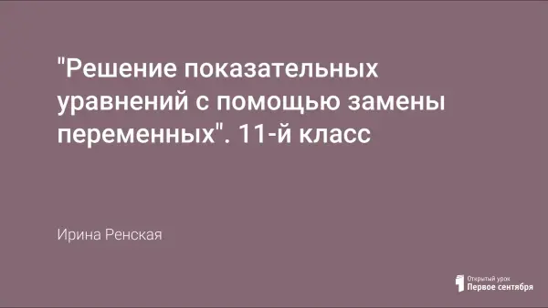На уроке изучается алгоритм решения показательных уравнений с помощью замены переменных. В ходе урока уделяется особое внимание формированию навыков организации собственной деятельности – самостоятельного поиска решения, самоконтроля, анализа результатов своей работы.