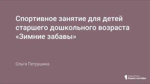 Цель занятия: приобщение детей к занятиям физической культурой и спортом, здоровому образу жизни, проявление способностей в играх и эстафетах.