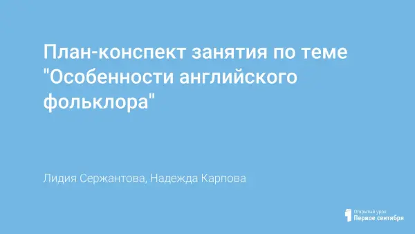 План-конспект занятия по теме "Особенности английского фольклора"