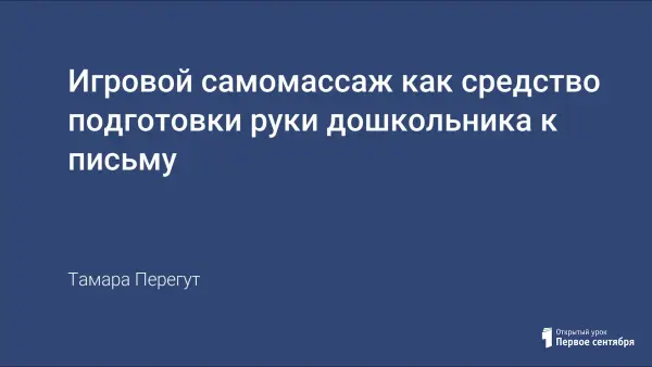 Важный аспект работы с детьми ‒ подготовка руки дошкольника к обучению письму и коррекция нарушений письменной речи у младших школьников. С этой целью рекомендуется использовать игровой самомассаж кистей рук ‒ эффективное и универсальное средство реабилитации движений у детей с нарушением в развитии, средство коррекции нарушений письменной речи у детей с локальными проблемами и развивающе-оздоровительное средство для нормально развивающихся детей.