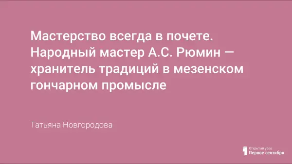 Автор приглашает учащихся совершить путешествие в удивительный край – Мезенский район Архангельской области. Учащиеся знакомятся с народными промыслами, бытовавшими в этом краю, узнают секреты изготовления старинной посуды, выясняют значение некоторых необычных слов.