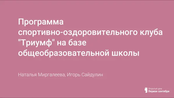 Программа спортивно-оздоровительного клуба "Триумф" на базе общеобразовательной школы