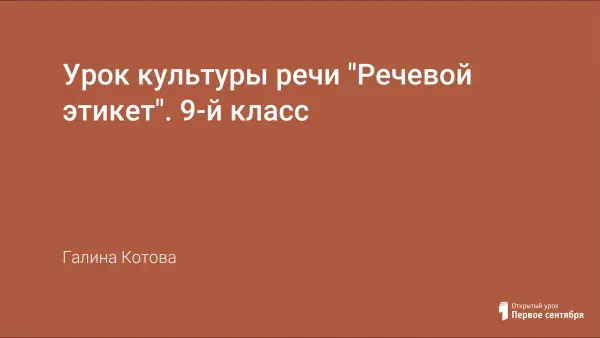 Урок культуры речи, на котором рассматриваются основные понятия: «этикет», «речевой этикет», «требования к современному этикету», «хороший собеседник». В игровой форме предлагается урок-общение, который развивает навыки правильного употребления формул приветствия и благодарности, повышает уровень речевой культуры.