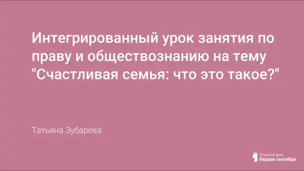 Интегрированное занятие по праву и обществознанию. На занятии закрепляются знания по правовым и нравственным аспектам семейных отношений, формируется ответственное отношение к созданию семьи.