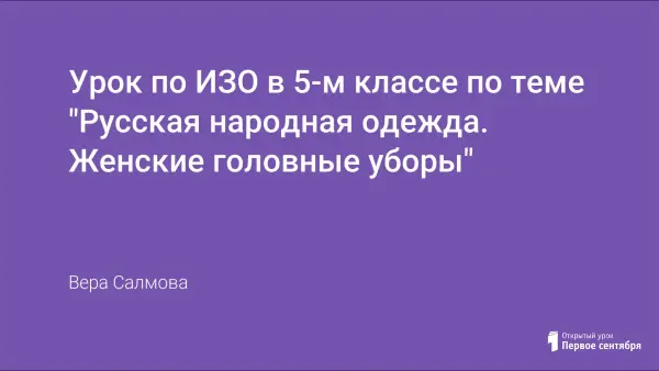 Цели урока: познакомить учащихся с особенностями русской народной одежды, в частности женских головных уборов; сформировать понимание связи представлений людей об устройстве мира и образного строя одежды, закрепить навыки создания художественного образа в декоративной композиции; развивать эстетический вкус.
