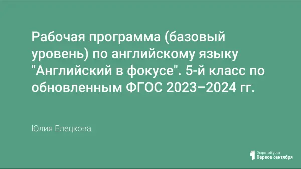 Рабочая программа по английскому языку для 5-го класса разработана в соответствии с ФГОС ООО от 31.05.2021г на основе основной образовательной программы основного общего образования для общеобразовательной школы по учебнику «Английский в фокусе 5», одобренной решением федерального учебно-методического объединения по общему образованию протокол 3/21 от 27.09.2021г.