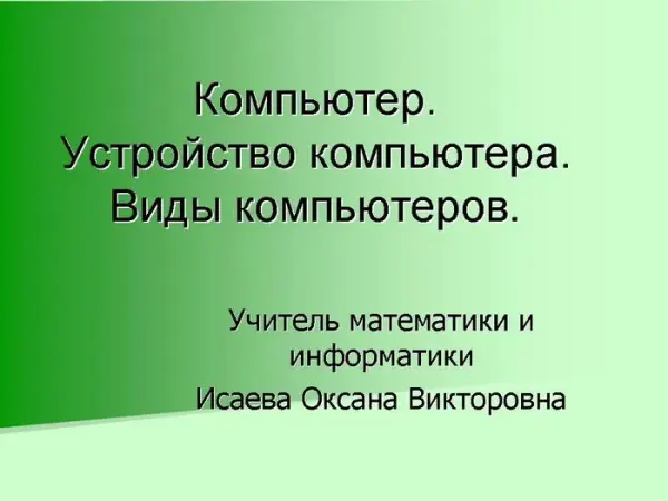 Разработка урока предназначена для изучения темы "Устройство компьютера" в 5–6-х классах. Основной целью является ознакомить учащихся с устройством компьютера и с назначением основных и дополнительных устройств компьютера.