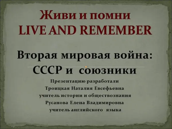 Представлена презентация «Вторая мировая война: СССР и союзники» к уроку истории и обществознания.