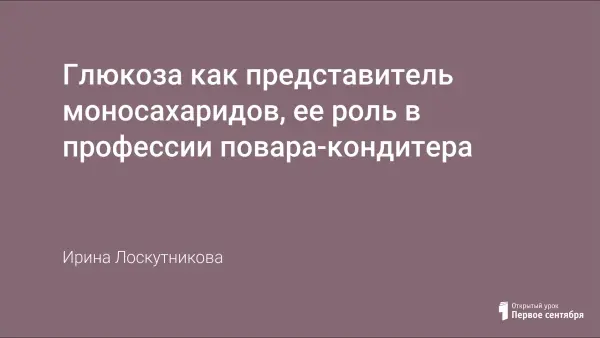 Глюкоза как представитель моносахаридов, ее роль в профессии повара-кондитера
