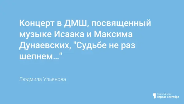 Музыкальный концерт в ДМШ, посвящённый музыке Исаака и Максима Дунаевских, с участием учащихся ДМШ младших и средних классов, преподавателей направлен на знакомство с лучшими образцами современной «лёгкой» музыки, повышение интереса к ансамблевой игре, обострение восприимчивости через слово, комплексное развитие музыкальности детей.