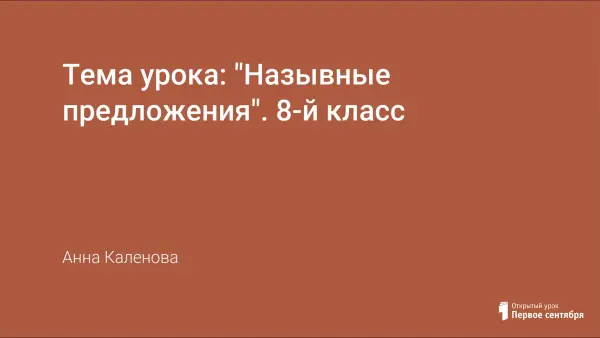 Урок знакомит учащихся с назывными предложениями; показывает отличие назывных предложений от других односоставных предложений; воспитывает у учащихся интерес к творчеству русских поэтов, любовь к русскому языку; формирует умения использовать назывные предложения в речи, определять роль назывных предложений в художественной литературе. На следующих занятиях предполагается контроль знаний учащихся по теме. Используется дифференциация при закреплении материала.