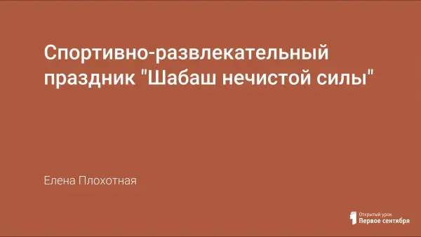 Спортивно-развлекательный праздник «Шабаш нечистой силы» можно проводить в летнем оздоровительном лагере и в летнем школьном лагере. Ребята всех возрастов с большим удовольствием принимают участие, праздник проводится накануне дня Ивана Купалы. Ребята узнают историю проведения дня Ивана Купалы, традиции русского народа, играют в массовые игры. Основная цель праздника – оздоровить подрастающего поколения и привить интерес к подвижным играм.