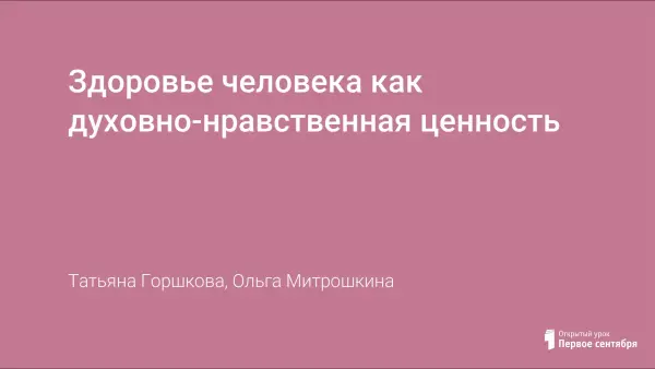 Здоровье человека как духовно-нравственная ценность