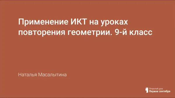 Важным этапом программы геометрии 9-го класса является повторение, обобщение и систематизация изученного материала по геометрии в 7–9-х классах для успешного продолжения изучения предмета, а также подготовки к сдаче ГИА. Предлагается система обобщающего повторения основных разделов планиметрии и подготовки учащихся к ГИА (раздел геометрия) с использованием ИКТ.