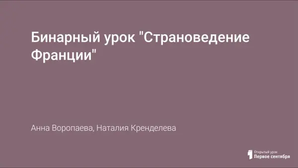 Бинарный урок "Страноведение Франции" – это урок географии с включением лексического материала на французском языке по теме "География Франции". Данный урок рассчитан на 5–6-е классы, которые изучают французский язык как второй иностранный.