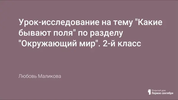 Урок-исследование помогает учащимся обобщить знания о многообразии культур, растущих на полях, о значении этих культур в жизнедеятельности человека; продолжить развитие и становление интеллектуальных умений, практических умений (работа с гербариями, справочной литературой); воспитывать любовь к природе, интерес к разнообразию растительного мира; учиться видеть и ценить прекрасное.