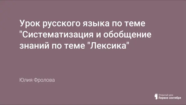 Урок русского языка по теме "Систематизация и обобщение знаний по теме "Лексика"