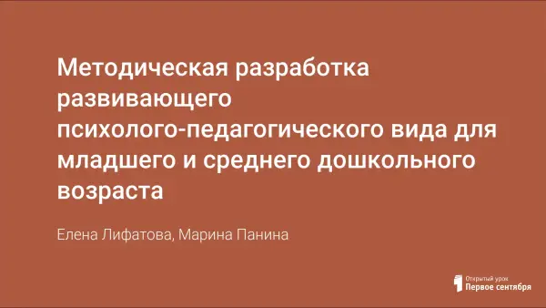 Методическая разработка развивающего психолого-педагогического вида для младшего и среднего дошкольного возраста