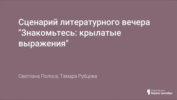 Сценарий литературного вечера "Знакомьтесь: крылатые выражения"
