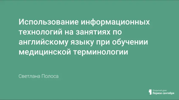 Статья раскрывает методы использования информационных технологий и интернет-ресурсов при обучении иностранному языку студентов медицинского колледжа. Основной целью применения информационных технологий на занятиях по иностранному языку является формирование ключевых языковых компетенций, что требует наличия современного аутентичного материала по каждой теме. В статье указаны основные интернет-источники, используемые при работе с медицинской терминологией.