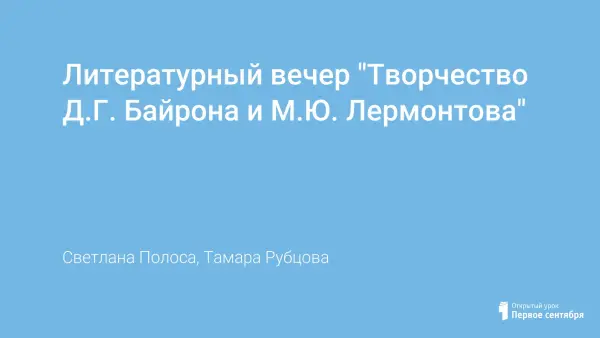 Литературный вечер "Творчество Д.Г. Байрона и М.Ю. Лермонтова"