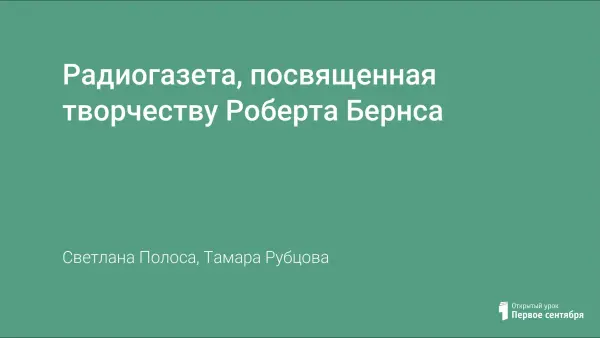 Радиогазета посвящена творчеству Роберта Бернса. Основные цели и задачи данного мероприятия: развитие интереса к поэтическим произведениям Роберта Бернса; формирование культуры восприятия иностранного языка через поэзию и музыку; формирование интереса к иноязычной культуре; осуществление нравственного воспитания; повышение общей культуры обучающихся.