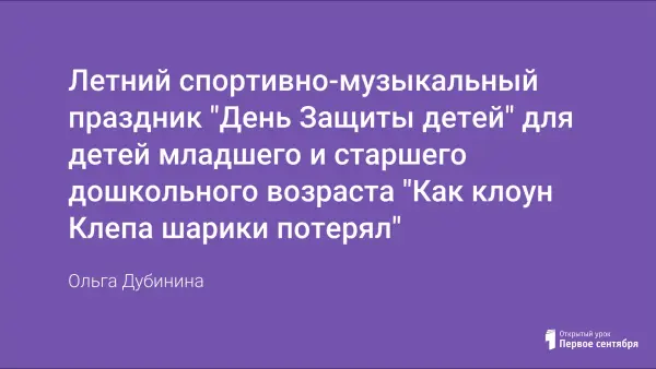 Цель занятия: создать у детей радостное и праздничное настроение; вызвать эмоциональный подъем, сплотить участников коллектива. Задачи: воспитывать эмоциональную отзывчивость, добрые чувства; укреплять дружеские отношения; повышать интерес ко всему новому; обобщать знания детей о празднике «День защиты детей»; развивать у детей творческое воображение, память, связную речь, чувство ритма, темпа, координации движений и слуха, двигательную активность, ловкость, смелость, силу, скорость.