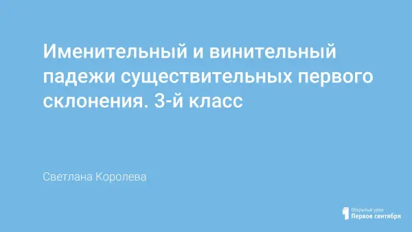Автор на уроке составляет схему-памятку распознавания именительного и винительного падежей имен существительных первого склонения. Развивает у учащихся орфографическую зоркость, каллиграфически правильное письмо, внимание, наблюдательность.