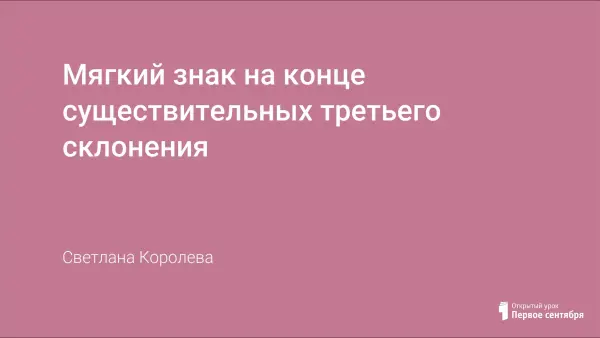 Цели урока – дать понятие о новой функции мягкого знака – показателе женского рода существительного, развивать орфографическую зоркость, технику грамотного скоростного письма, устную и письменную речь; воспитывать навыки самоконтроля.