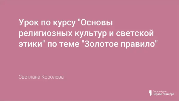 Урок по курсу “Основы религиозных культур и светской этики» во 2-м классе знакомит учащихся с «золотым правилом»: «Как хотите, чтобы с вами поступали люди, так поступайте и вы с ними» – с целью убедить дитей следовать этому правилу в жизни.