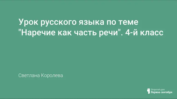 Урок нацелен на формирование образовательных компетенций учащихся 4-го класса в предметной области русский язык по теме «Общее понятие о наречии как части речи». На уроке учащиеся знакомятся с наречиями, выполняя различные задания как в группе, так и индивидуально.