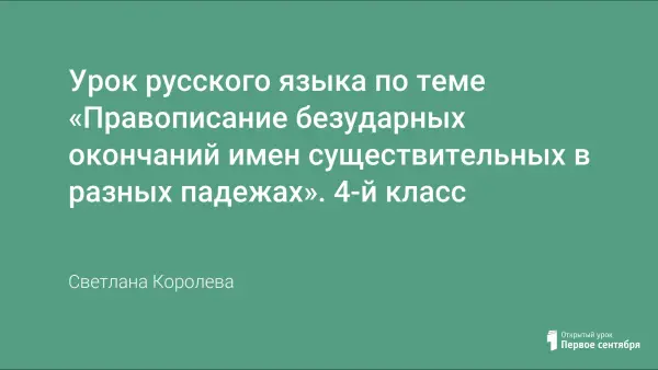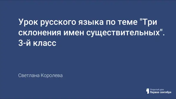 Урок по системе Л.В. Занкова (учебник: Полякова А.Г.) ‒ проблемный, открывает новые знания с ИКТ. Формирует образовательные компетенции (информационные, коммуникативные, рефлексивные) учащихся в предметной области "Русский язык". Учащиеся определяют тип склонения имен существительных в зависимости от рода и окончания в начальной форме.