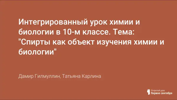 Интегрированный урок химии и биологии в 10-м классе. Тема: "Спирты как объект изучения химии и биологии"