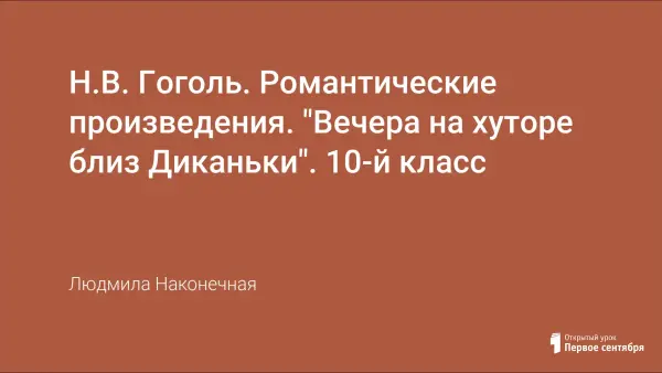Автор знакомит учащихся с жизнью писателя, дает представление о романтизме и романтических произведениях Н.В. Гоголя.