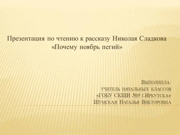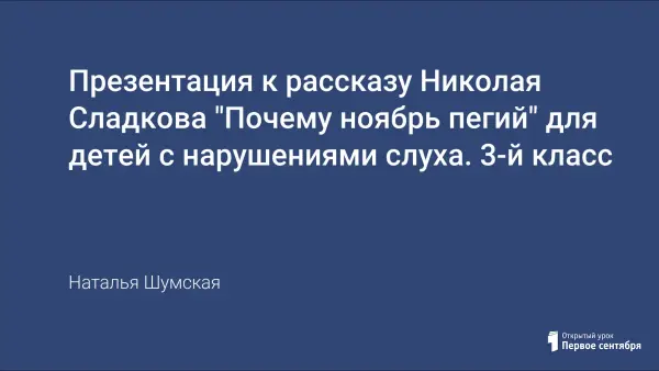 Представлена презентация к рассказу Николая Сладкова "Почему ноябрь пегий" для детей с нарушениями слуха.