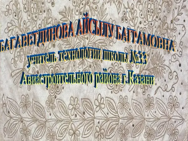Статья посвящена национальному татарскому прикладному искусству – вышивке золотом.