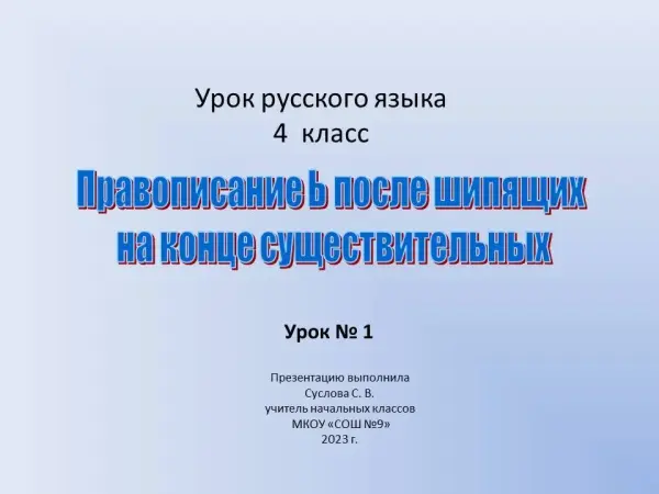 Цели урока: научить детей самостоятельно составлять алгоритм правописания Ь на конце существительных после шипящих и работать по нему; повторить признаки склонений существительного; развитие мыслительных операций: анализа, синтеза, классификации; воспитание положительной мотивации к учению.