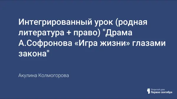 Связь литературы с жизнью показана с помощью деловой игры, в ходе которой дети сами доказывают невиновность главного героя драмы – Ефима. Перенося ситуацию драмы на современность, учащиеся убеждаются в необходимости знаний собственных прав, доказывают, что без достаточных доказательств и фактов суд не может принять решение – постановление.