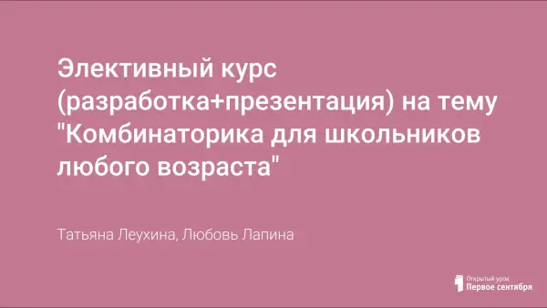Элективный курс (разработка+презентация) на тему "Комбинаторика для школьников любого возраста"