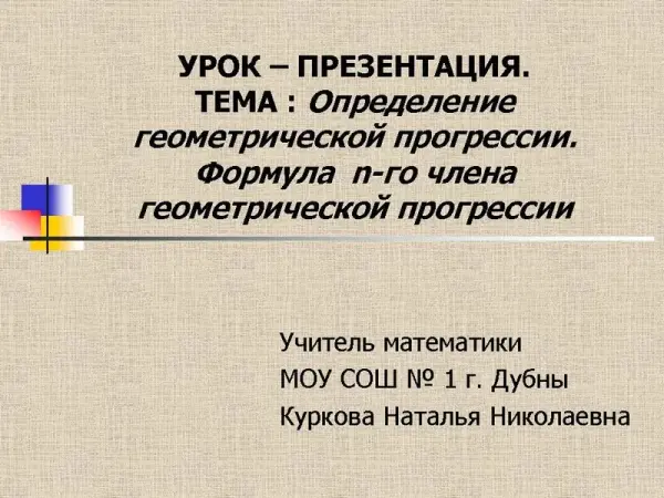 Урок-презентация "Определение геометрической прогрессии. Формула n-го члена геометрической прогрессии"