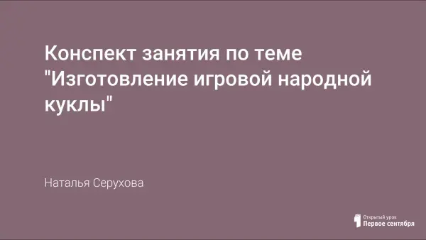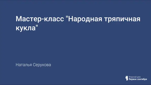 В данном мастер-классе дети знакомятся с историей народной куклы. Автор знакомит детей с многообразием кукол славян и рассказывает об отличительных особенностях каждой куклы. В практической части обучающимся предлагается выполнить куклу «Десятиручку», ориентируясь по технологической карте. Кроме того, мастер-класс обогащён сведениями о праздновании славянских и христианских праздников и существовавших на Руси кукол, приуроченных к их празднованию.